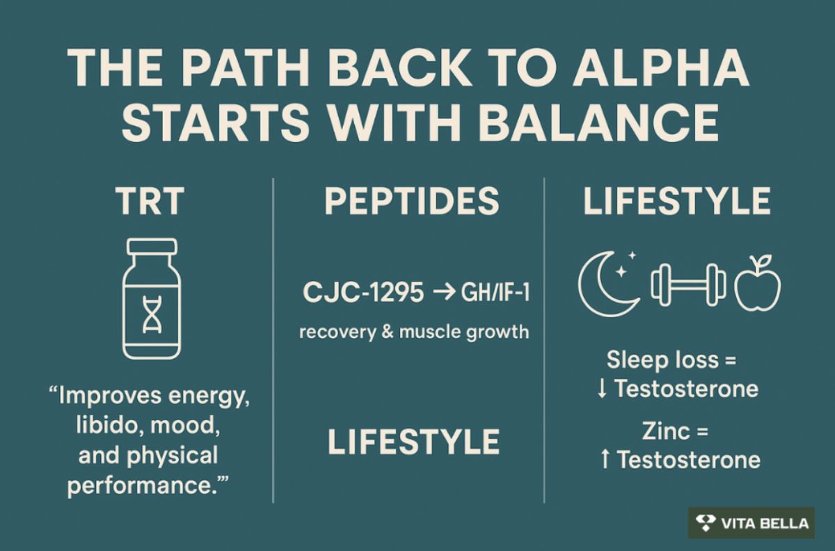 Vita Bella is leading the charge: They combine advanced treatments (like TRT and peptides) with lifestyle hacks to get you back to "alpha levels."