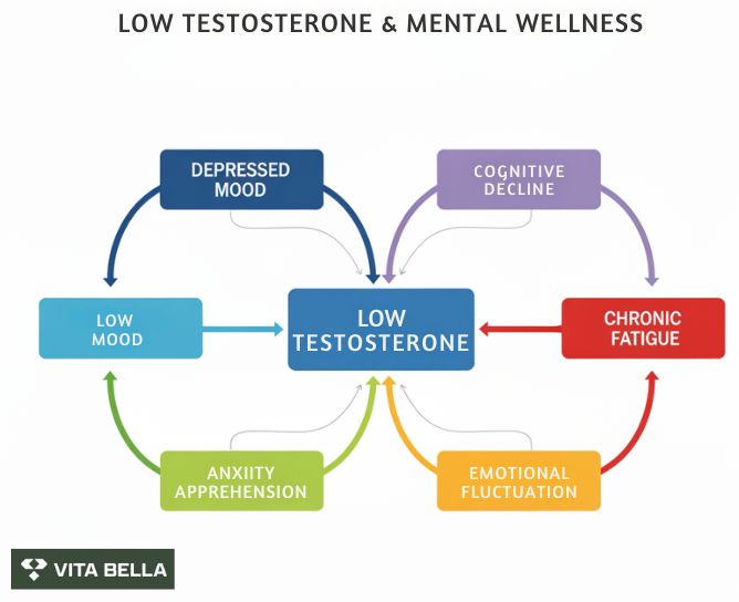 Testosterone appears to influence neurotransmitters like serotonin and dopamine, which helps explain why emotional symptoms often emerge, yet are frequently overlooked in diagnosis.
