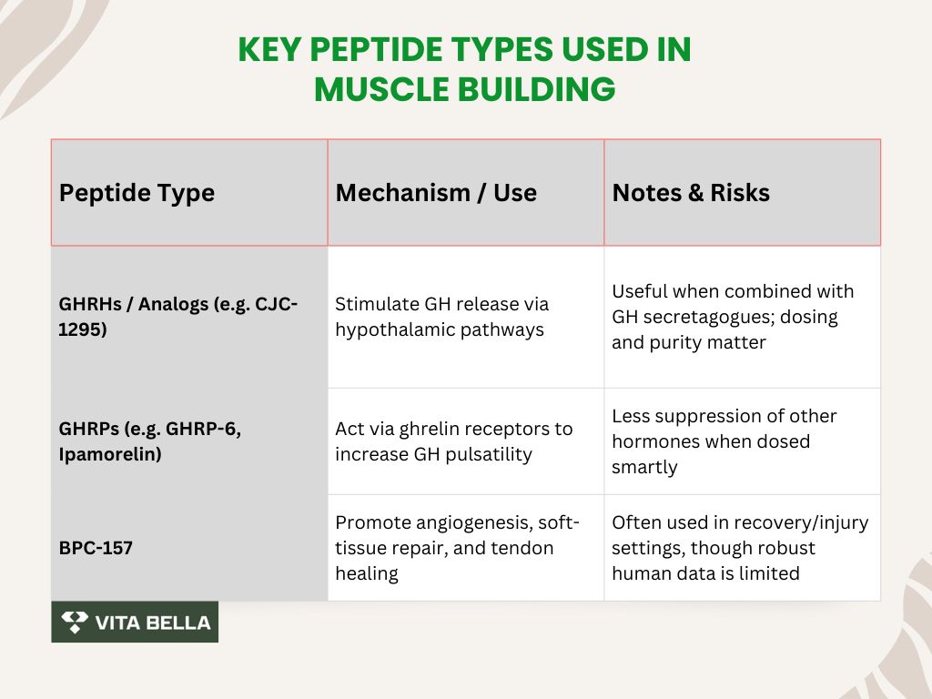 Peptides support the transition from recovery to muscle growth through several targeted biological pathways: