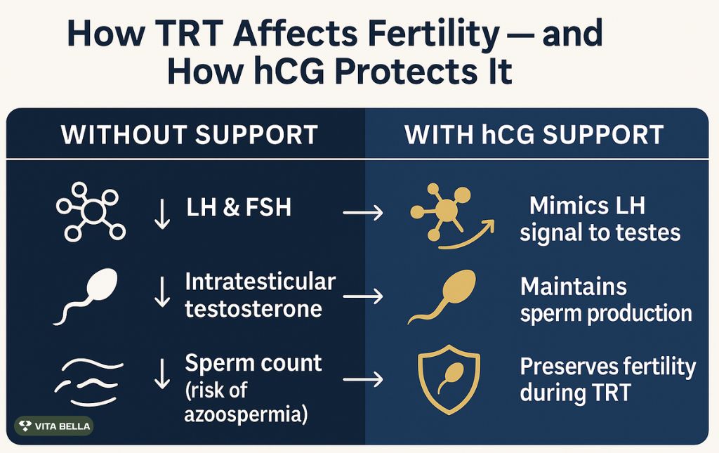 Vita Bella’s advanced TRT protocols combine testosterone therapy with fertility-protective measures that keep sperm health and hormone function aligned delivering true, lasting balance and complete peace of mind.